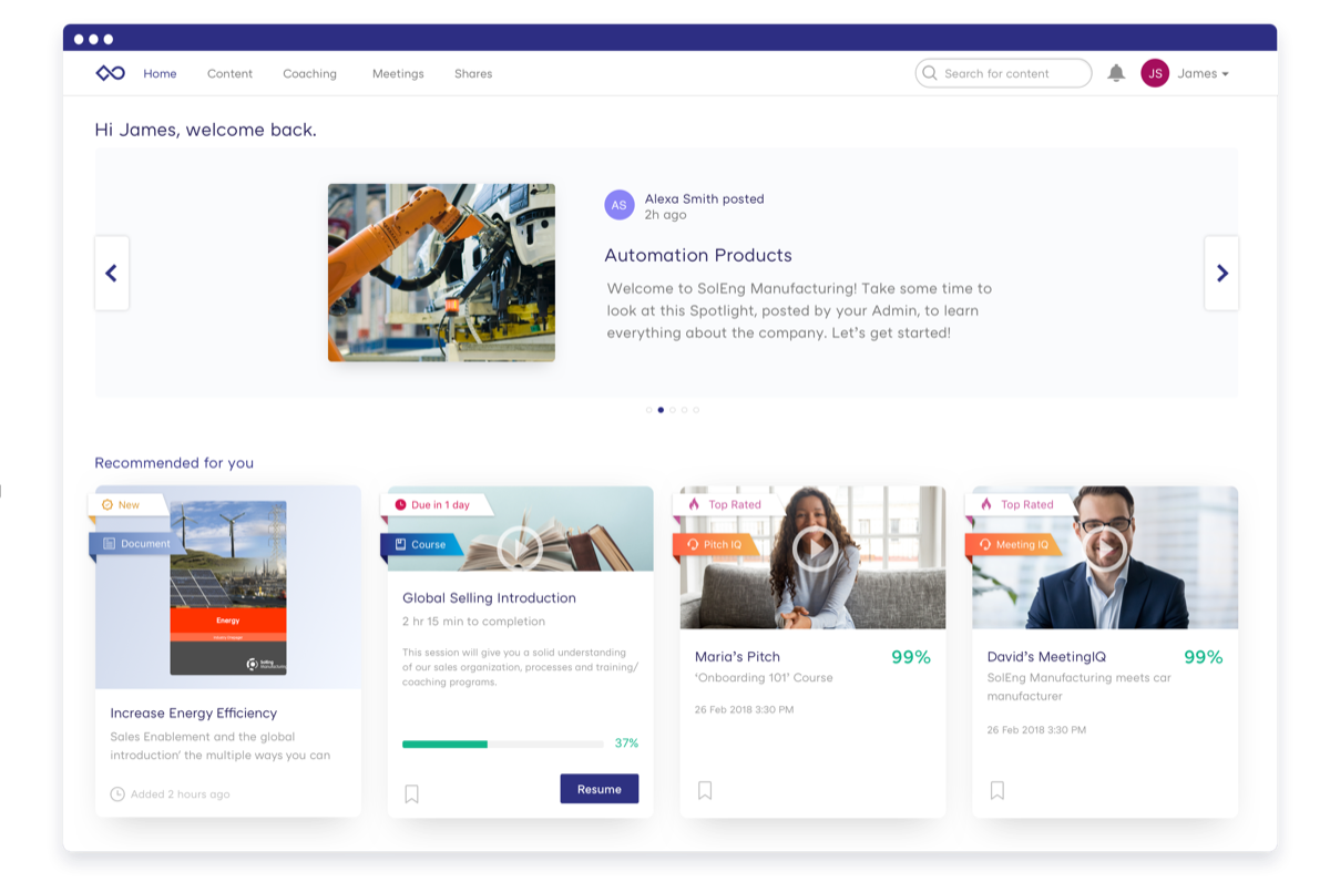 Enable sales teams by centralizing marketing and training content in a single platform. Ramp new hires faster – no matter where they work – and ensure every seller has the relevant content, knowledge and skills to exceed buyer expectations. Empower sellers to personalize every buyer interaction, and deliver more value with each sales conversation. Dig into the behavior data of your sales team, and use conversation intelligence to enable them with the knowledge they lack – from assets to specific training courses.